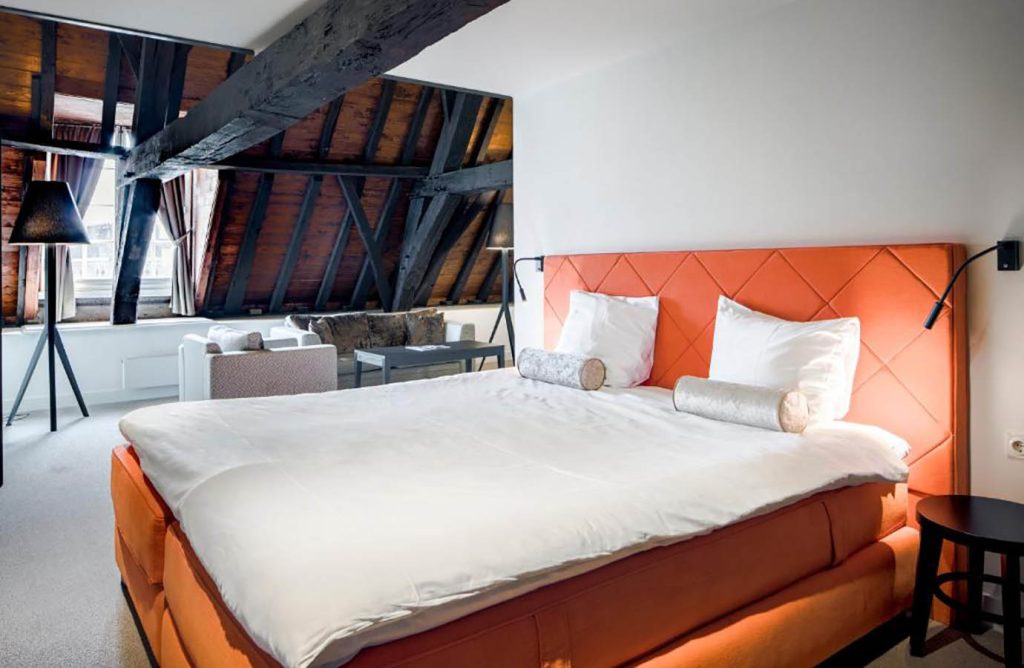 Wat mij meteen opviel was het contrast tussen de authentieke buitenkant en het moderne interieur. De lobby is stijlvol ingericht met warme kleuren, historische details zoals houten balken en hoge plafonds, maar ook eigentijdse kunst. Mijn kamer bood uitzicht op het kabbelende water van de Berkel én de imposante Walburgiskerk – een uitzicht dat me ’s ochtends meteen deed beseffen waarom ik weer naar Zutphen was teruggekeerd.